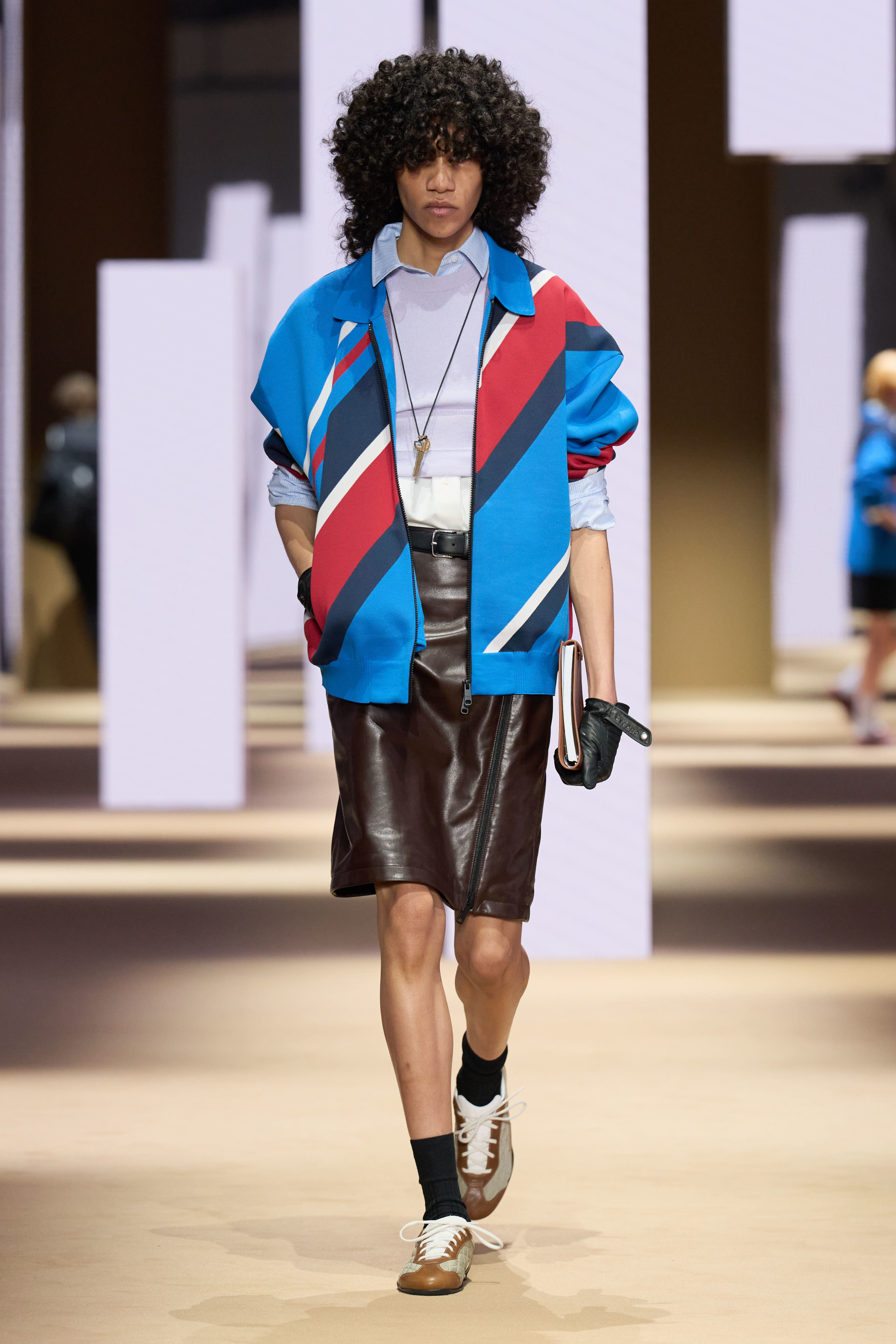 Ibrido di appropriatezza e sportività, di formalità e dinamismo, la collezione presenta un guardaroba adatto a diversi momenti, occasioni e personalità. Comprende piccoli cappotti, giacche-camicia, bomber, piumini, parka, blouson, maglioni, camicie, polo, gonne a pieghe, pantaloni e abiti. I look sono accessoriati con sneaker basse e scarpe da corsa o da ciclismo. (ANSA).